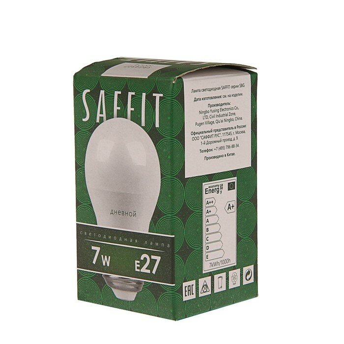 Лампа светодиодная, 7W 230V E27 6400K G45, SBG4507 5шт информация: