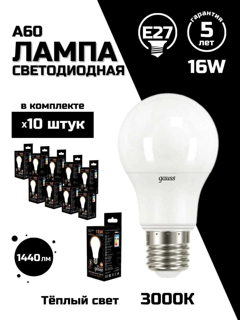10 цен на Лампа светодиодная Gauss E27 16W 3000K матовая 102502116, 10 шт
