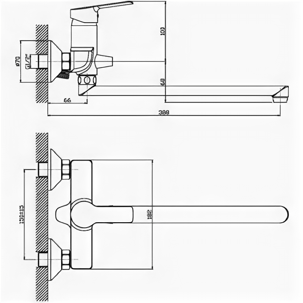 Смеситель на раковину настенный Эверест B46-350 с круглым поворотным изливом, кран-буксы 1/2", хром Смеситель на раковину настенный Эверест B46-350 с круглым поворотным изливом, кран-буксы 1/2", хром