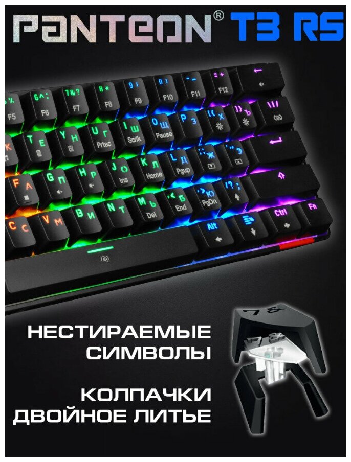 PANTEON T3 RS HS RB Grey-Black (38) Механическая клавиатура (TKL 60%, подсветка LED RAINBOW, Jixian Red, 61 кл., HotSwap, USB),цвет: серый-черный (38) 3 299 ₽