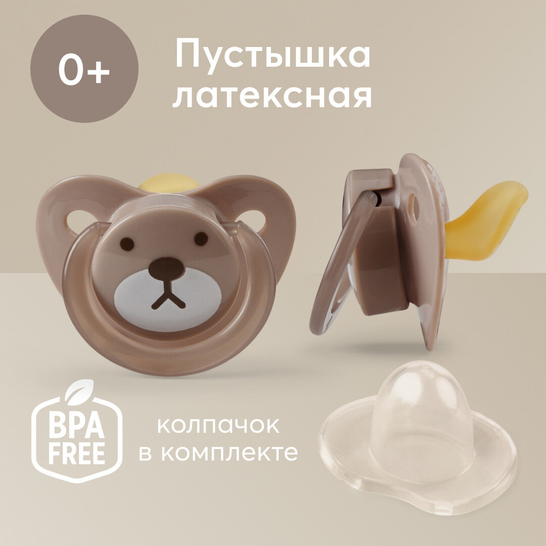 13022, Пустышка латексная от 0, Happy Baby, пустышка ортодонтическая форма, с колпачком, коричневая 265 ₽