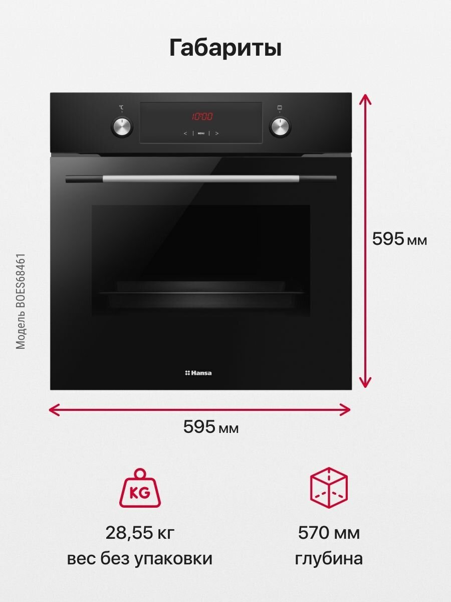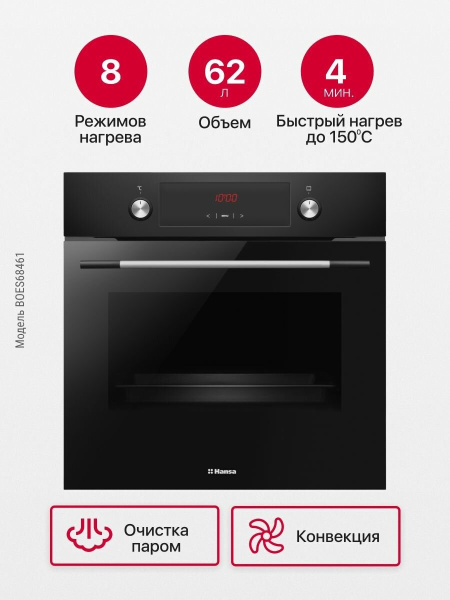 Электрический духовой шкаф Hansa встраиваемый BOES68461, 60 см, с грилем и улучшенной конвекцией, с быстрым нагревом, с таймером, двойное жаропрочное стекло информация: