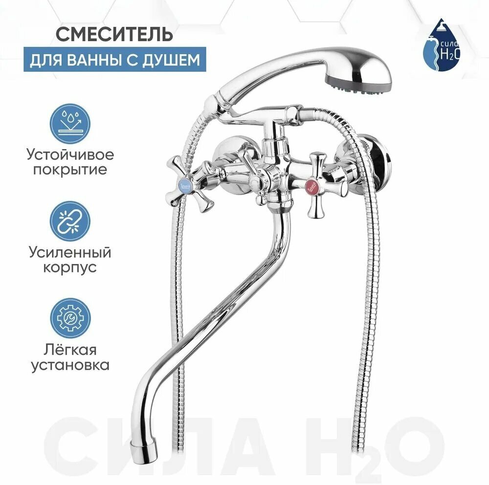 Смеситель для ванны с душем двухвентильный, кран в ванную G.lauf QFR7-A827, хром