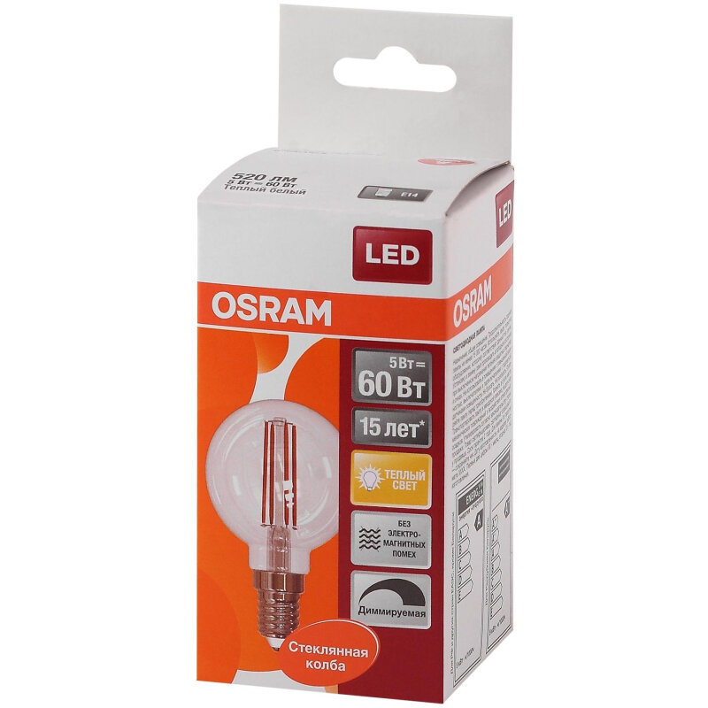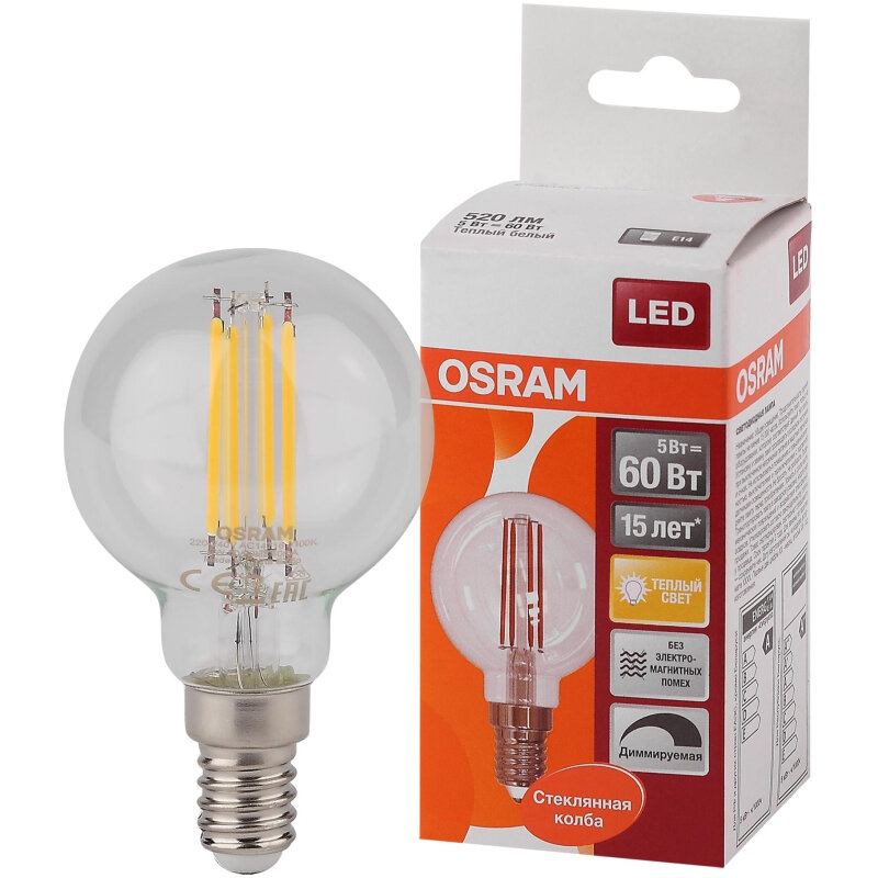 LED DIM 5WТЕПЛ230V FIL E14 ШАР - OSRAM