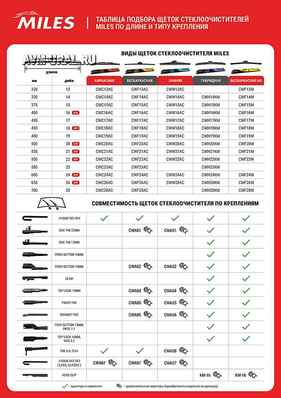 Отзывы на CWF26M MILES Щётка стеклоочистителя 650 мм (26) бескаркасная (9 адаптеров)