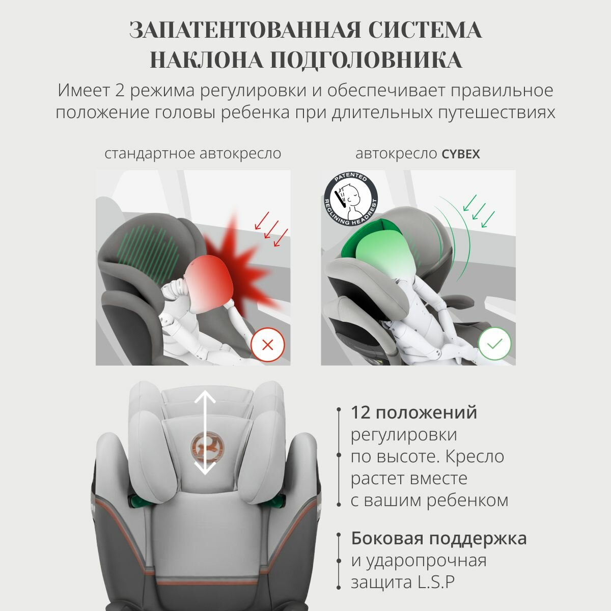 | Число положений высоты подголовника | 12 |