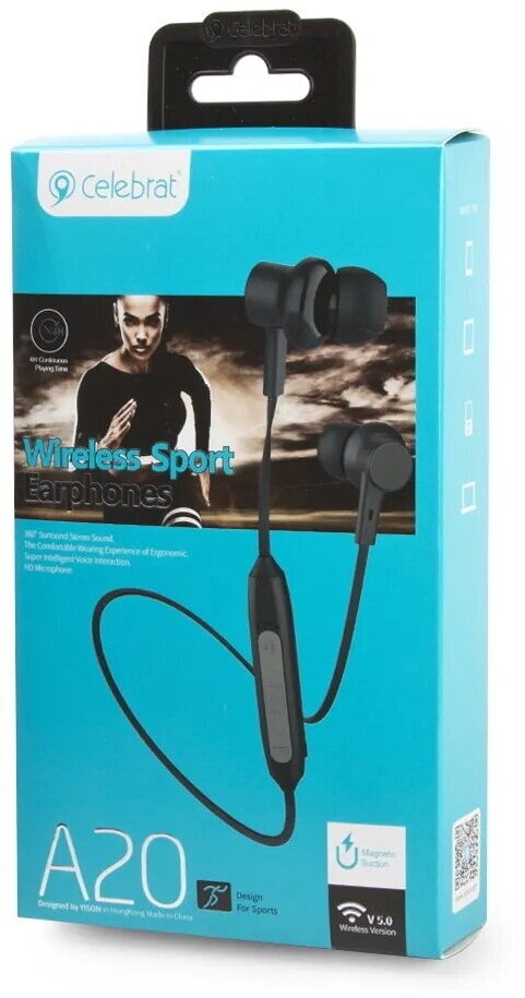Bluetooth гарнитура Celebrat A20 / Беспроводные спортивные наушники/чёрный информация: