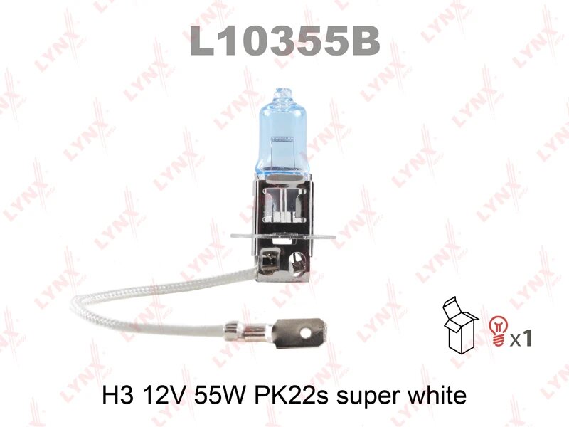 LYNXauto / l10355b / Лампа H3 12V 55W Pk22s SUPER WHITE