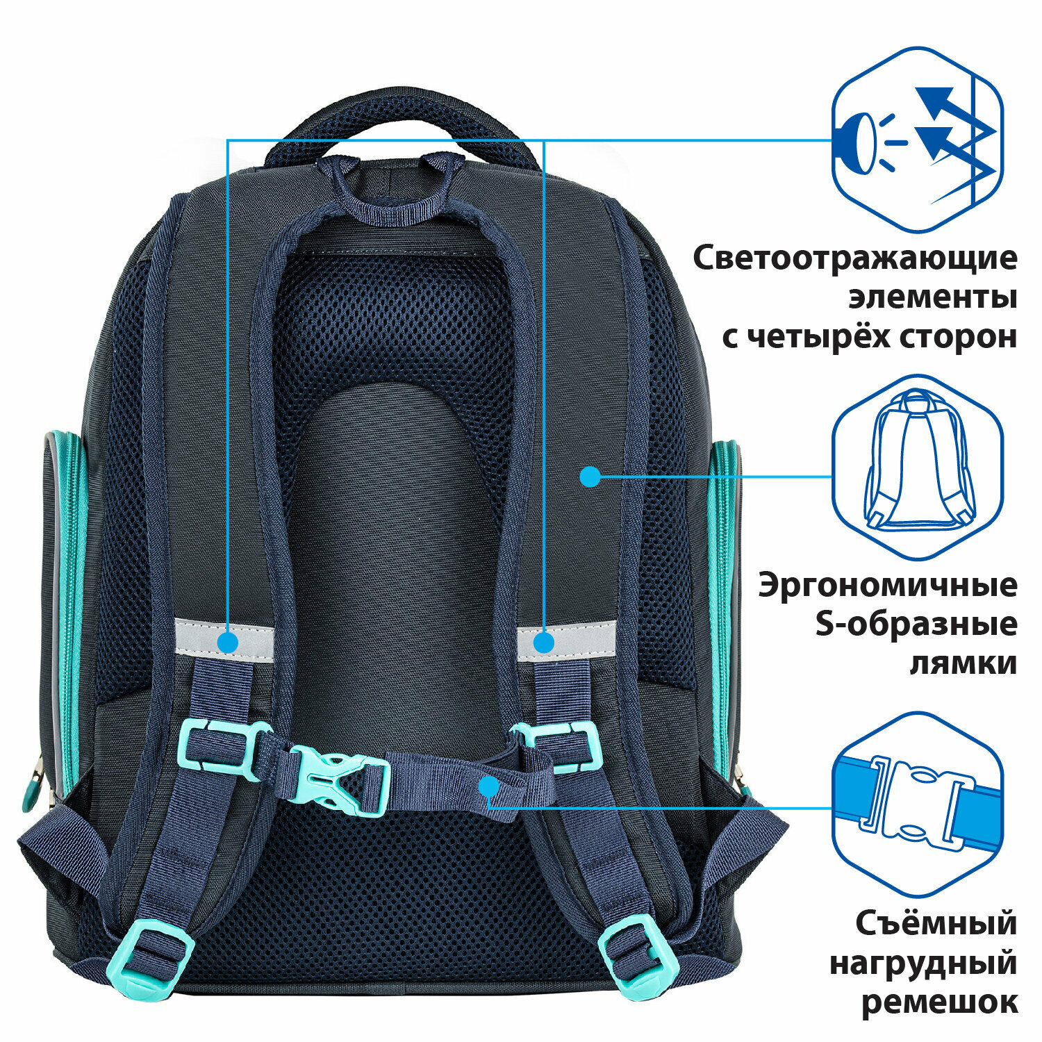 Рюкзак/ранец/портфель школьный для девочки, легкий формоустойчивый, эрго-спинка, Brauberg Classic, легкий каркас, премиум материал, Dandelions, синий, 37x32х21 см