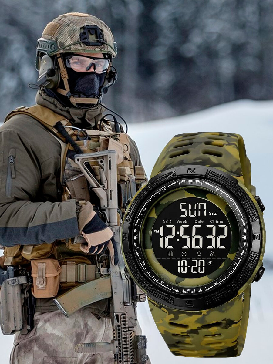 10 цен на Часы наручные SKMEI 1251 камуфляжные, Спортивные, водонепроницаемые, электронные, будильник, подсветка, таймер, секундомер