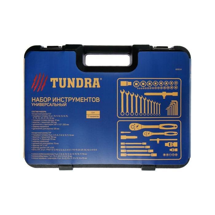 Набор инструментов в кейсе TUNDRA, автомобильный, CrV, 1/2' и 1/4', 77 предметов информация: