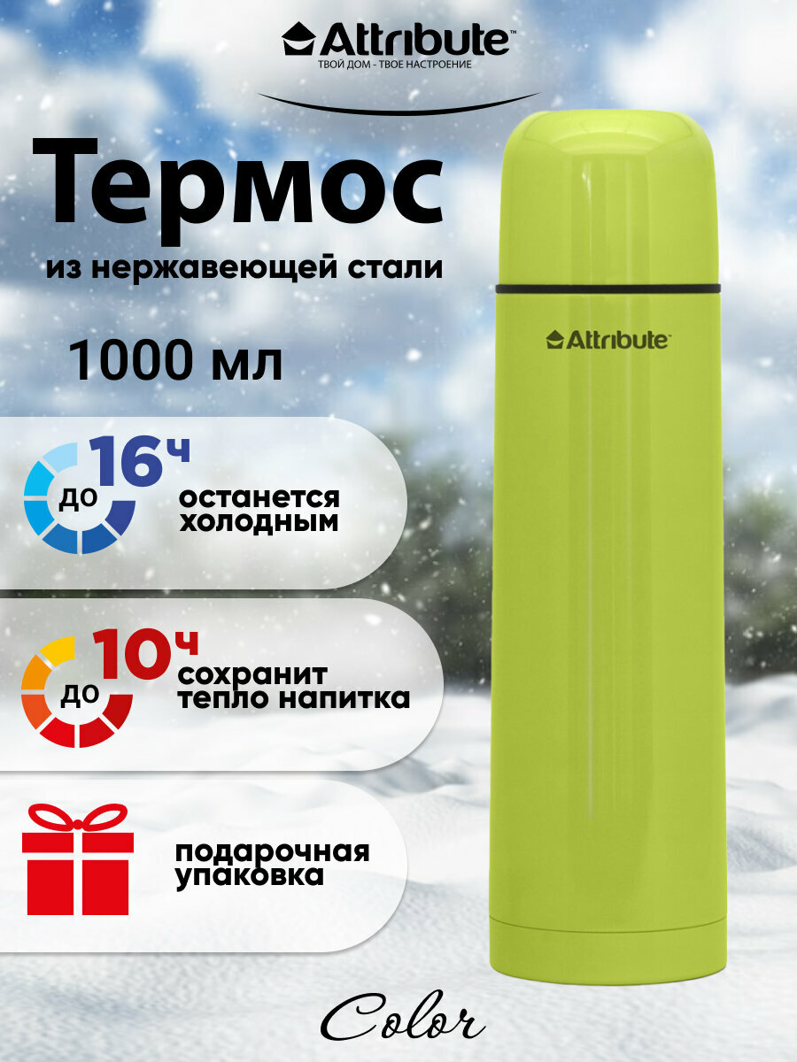 Термос с узкой горловиной ATTRIBUTE VAC.FLAS COLOR 1л зеленый информация: