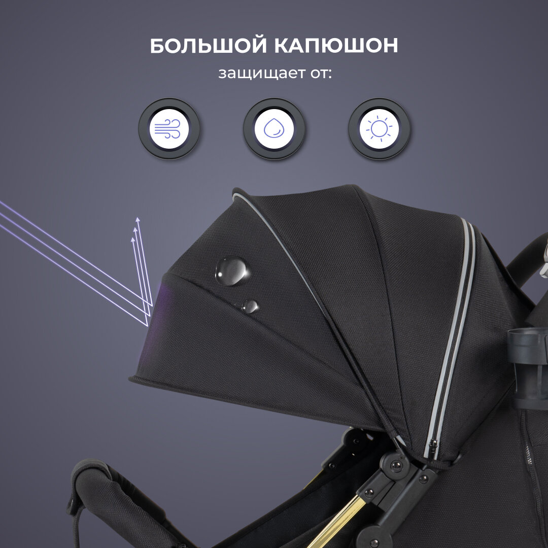 Коляска для детей Farfello Comfy Go / прогулочная коляска / то 7 месяцев / CG-99 / цвет черный / рама золото