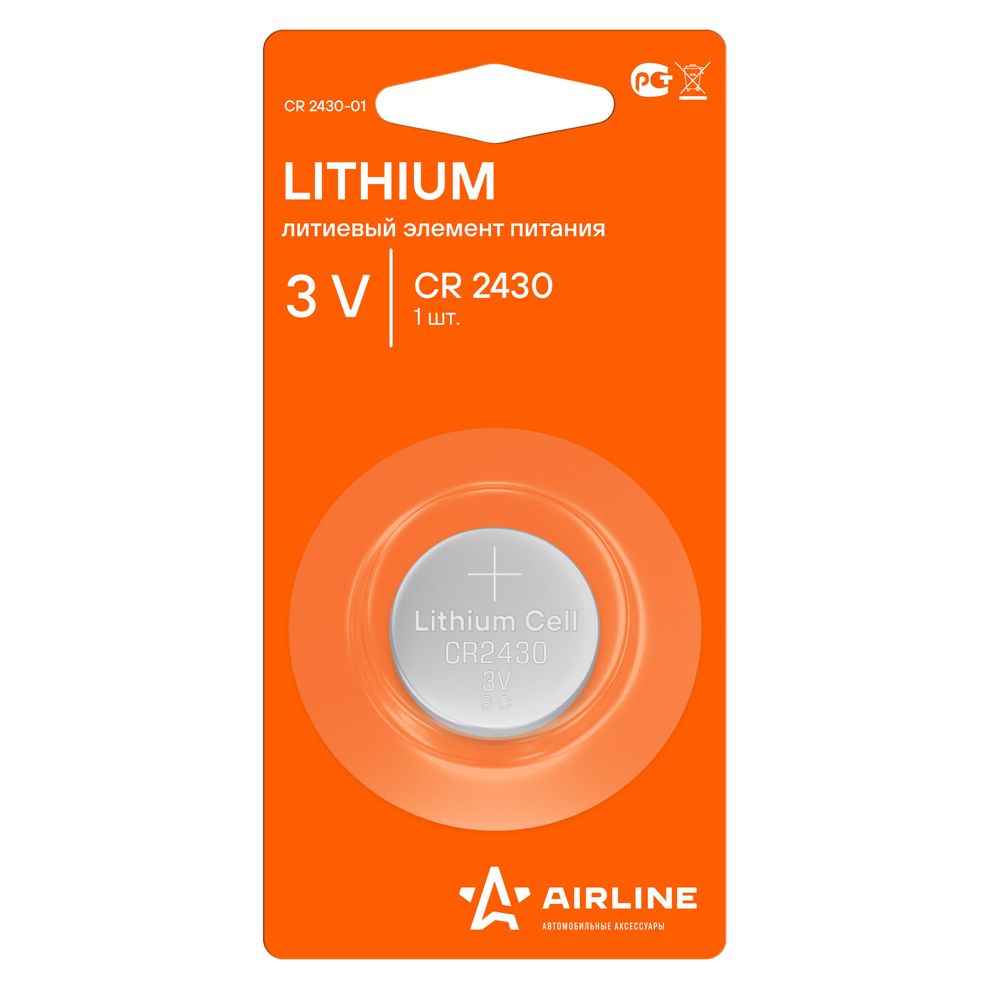 AIRLINE CR2430-01 Батарейка литиевая AIRLINE Lithium CR2430 3V упаковка 1 шт. CR2430-01