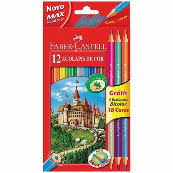 Карандаши цветные FABER-CASTELL ECO 12 цветов + 3 двусторонних, в картонной коробке
