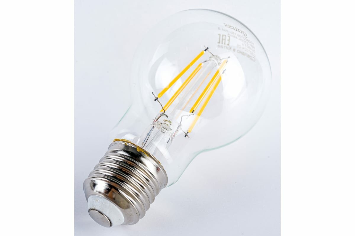 Filament ЛОН A60 E27 8W(740lm) 2700K 2K прозр. 105x60 филамент (нитевидная) 102802108, Лампа светодиодная Gauss