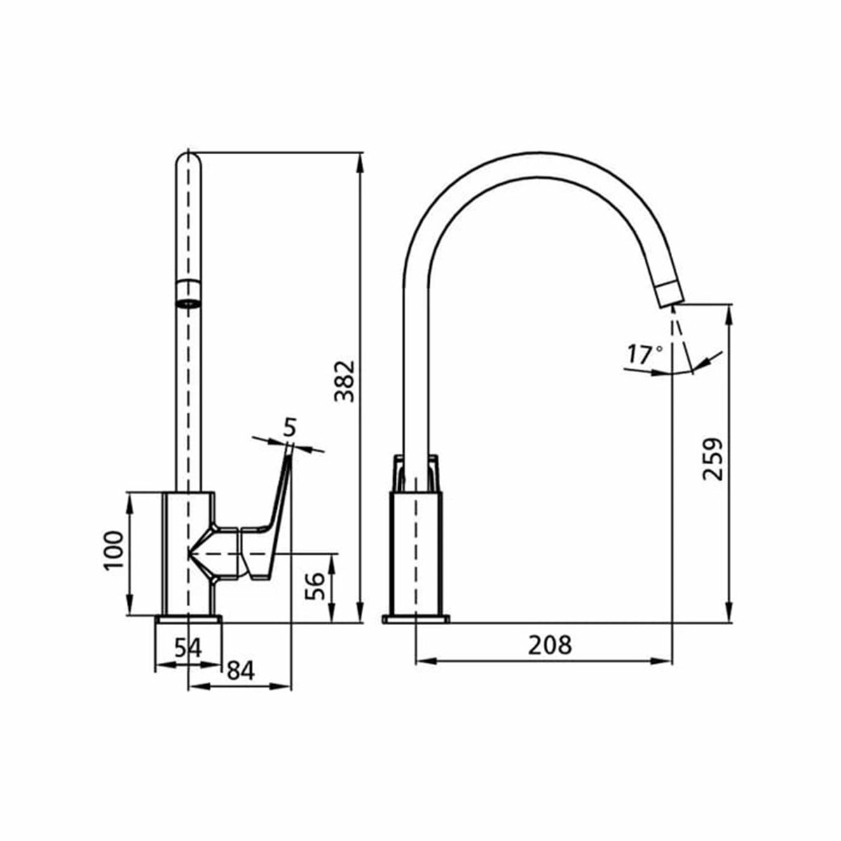 | Длина излива | 208 мм |