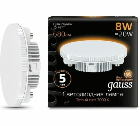 Отзывы на Лампа светодиодная Gauss GX53 8W 680lm 3000K LED (3шт в упаковке)