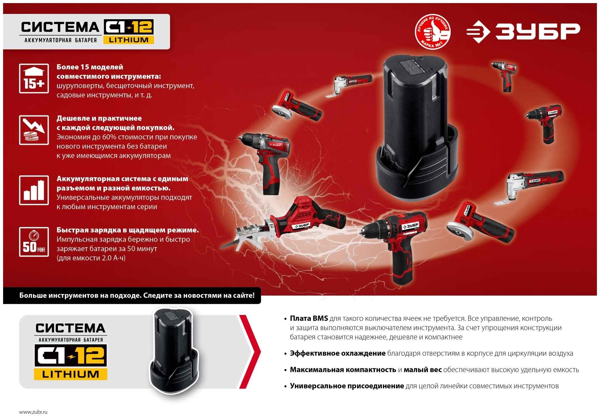 Батарея аккумуляторная Зубр АКБ-С1-12-2, 12В, 2Ач, Li-Ion информация: