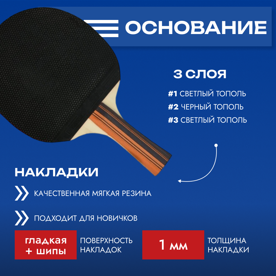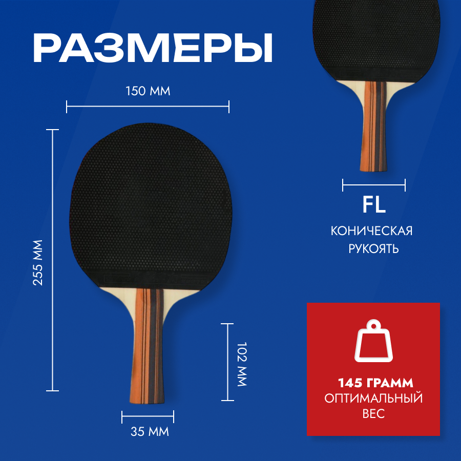 Ракетка для настольного тенниса 3* для атакующей игры, коническая рукоять