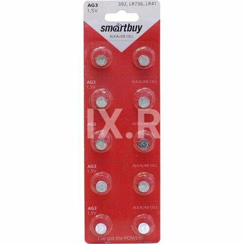 10 цен на Батарейка AG 3 (LR41, 384, 392) 1.5V SmartBuy blister 10 шт.