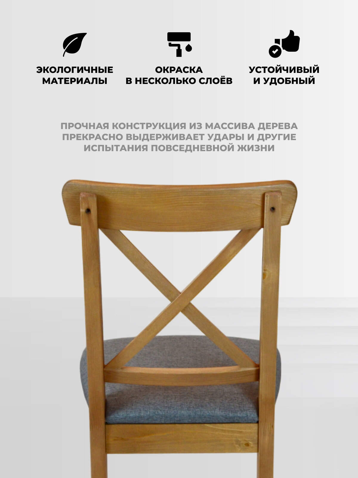 Отзывы на Стул Ингольф из массива сосны коричневый с мягким сидением серого цвета для кухни, дачи, гостиной
