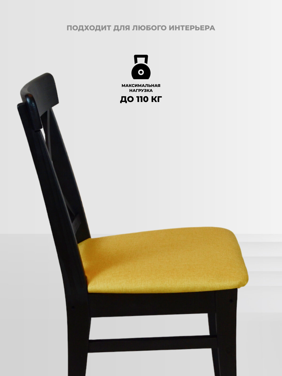 Стул Ингольф из массива сосны черный с мягким сидением желтого цвета для кухни, дачи, гостиной информация: