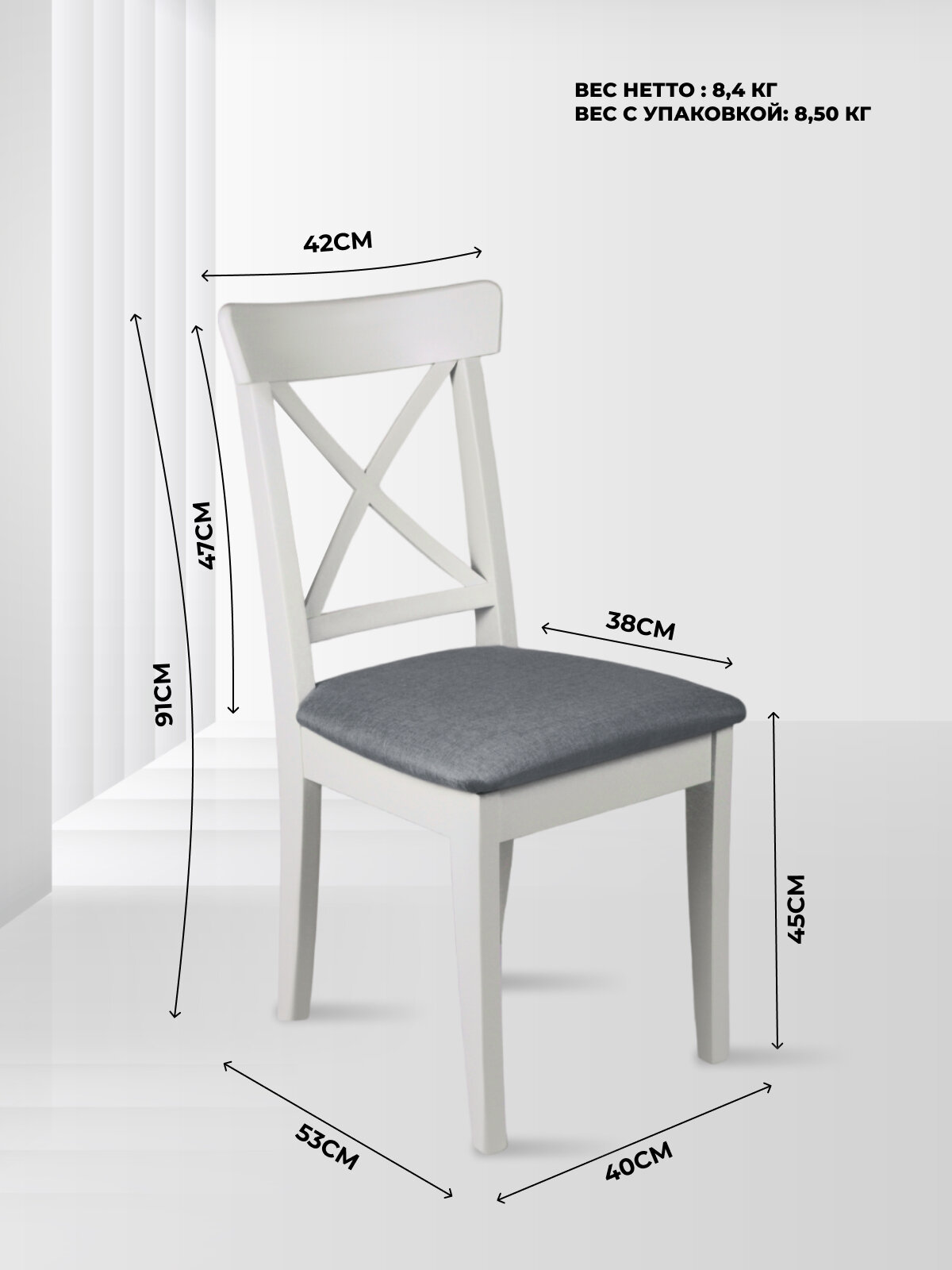 10 цен на Стул Ингольт из массива березы белый молочный с мягким сидением серого цвета для кухни, дачи, гостиной