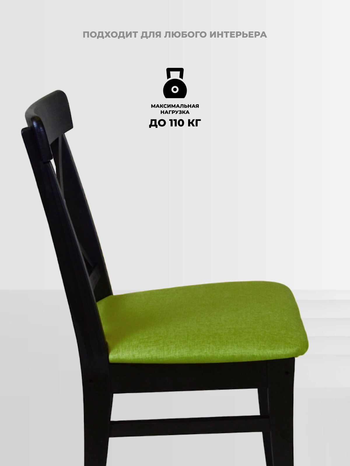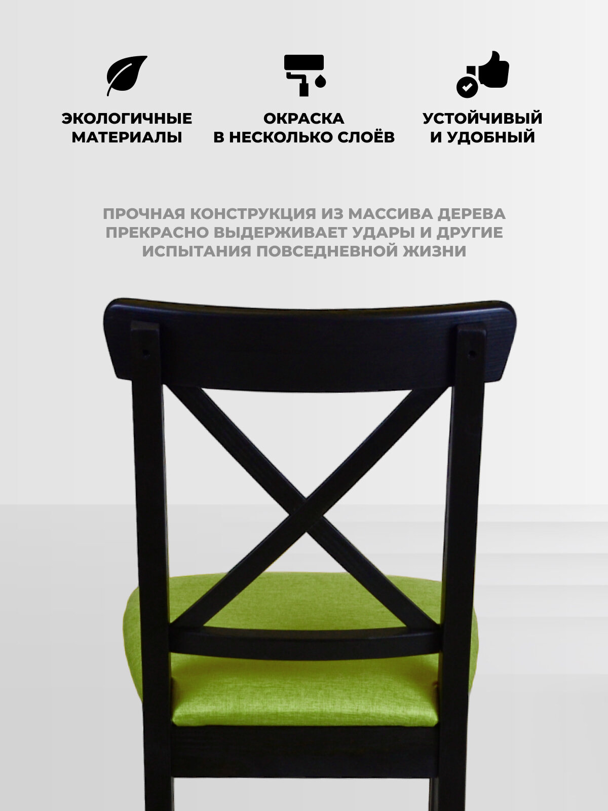 Стул Ингольф из массива сосны черный с мягким сидением зеленого цвета для кухни, дачи, гостиной информация: