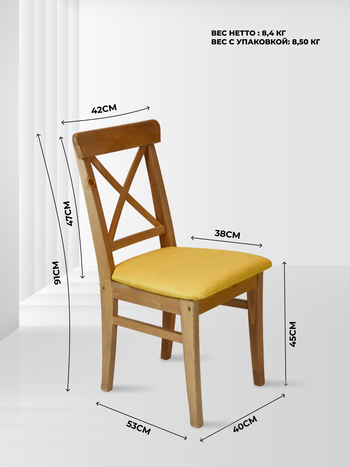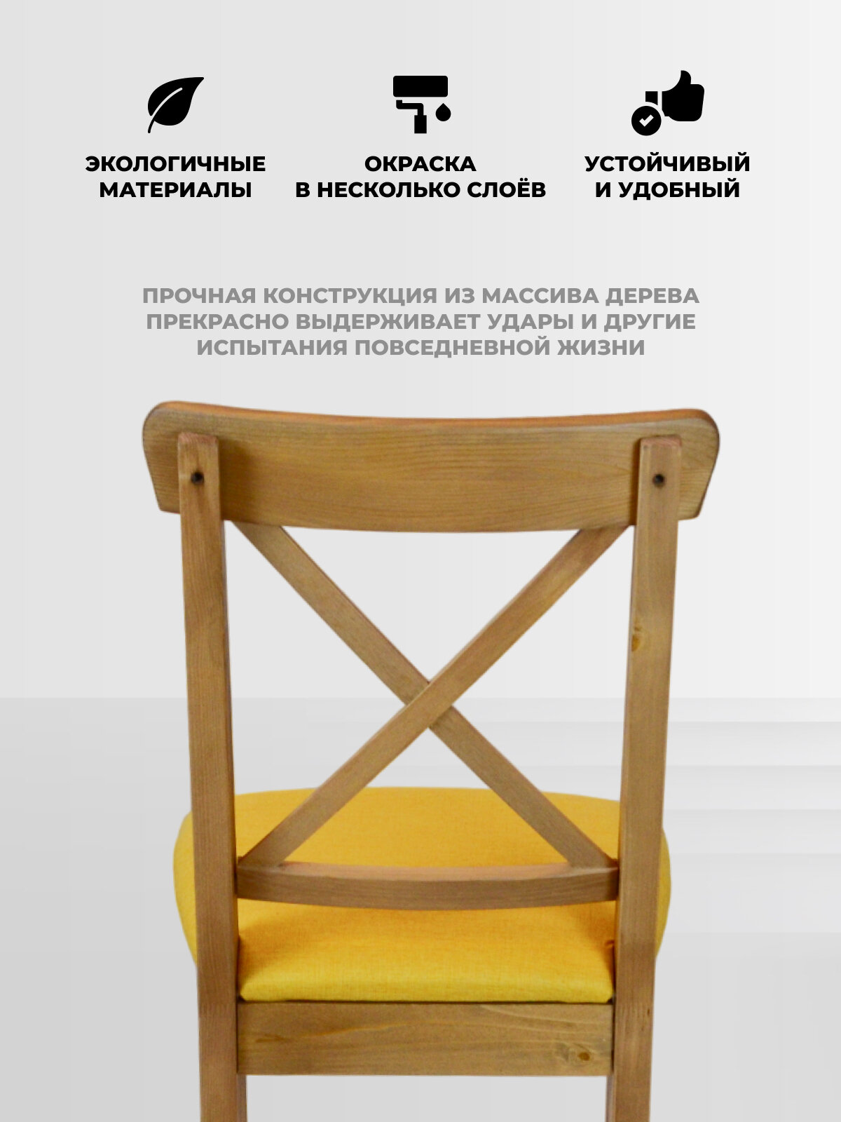 Отзывы на Стул Ингольф из массива сосны коричневый с мягким сидением желтого цвета для кухни, дачи, гостиной
