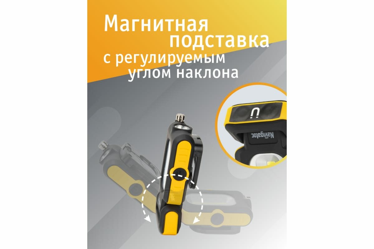 Фонарь Navigator NPT-W07-ACCU для работы, 1LED 1Вт +1COB 3Вт, аккумулятор 3.7В 14083