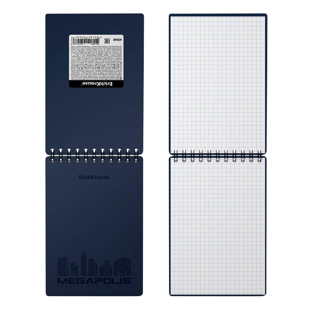 Блокнот с пластиковой обложкой на спирали ErichKrause MEGAPOLIS , синий, А6, 80 листов, клетка 45948 информация: