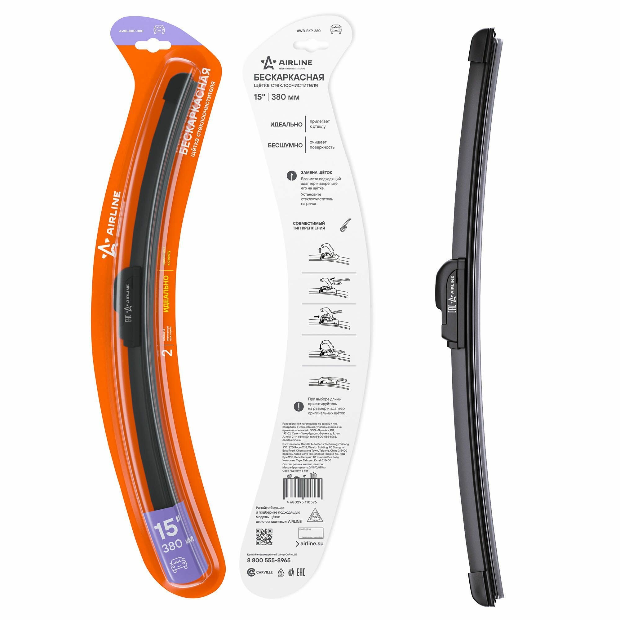 Отзывы на AWBBKP380 AIRLINE Щетка стеклоочистителя бескаркас 380мм (15) 1 адаптер (hook 9x3) (AWB-BKP-380)