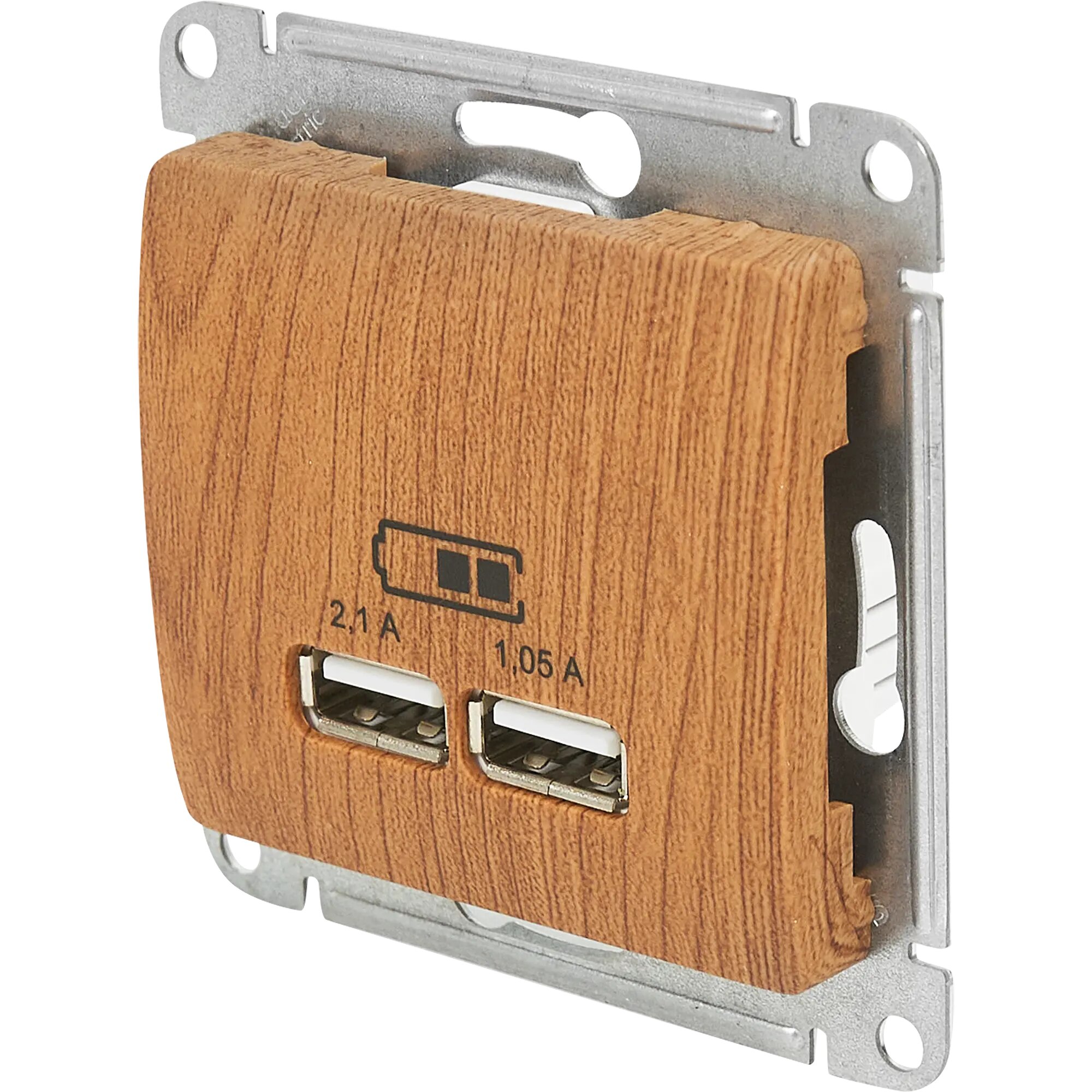 Розетка USB 2-м СП Glossa тип A+A 5В/2100мА 2х5В/1050мА механизм дерево дуб SchE GSL000533