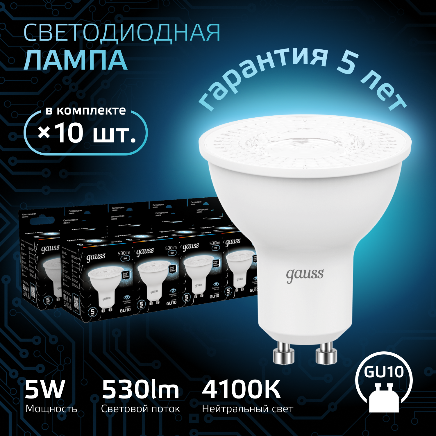 Упаковка ламп 10шт Gauss MR16 5W 530lm 4100K GU10 LED