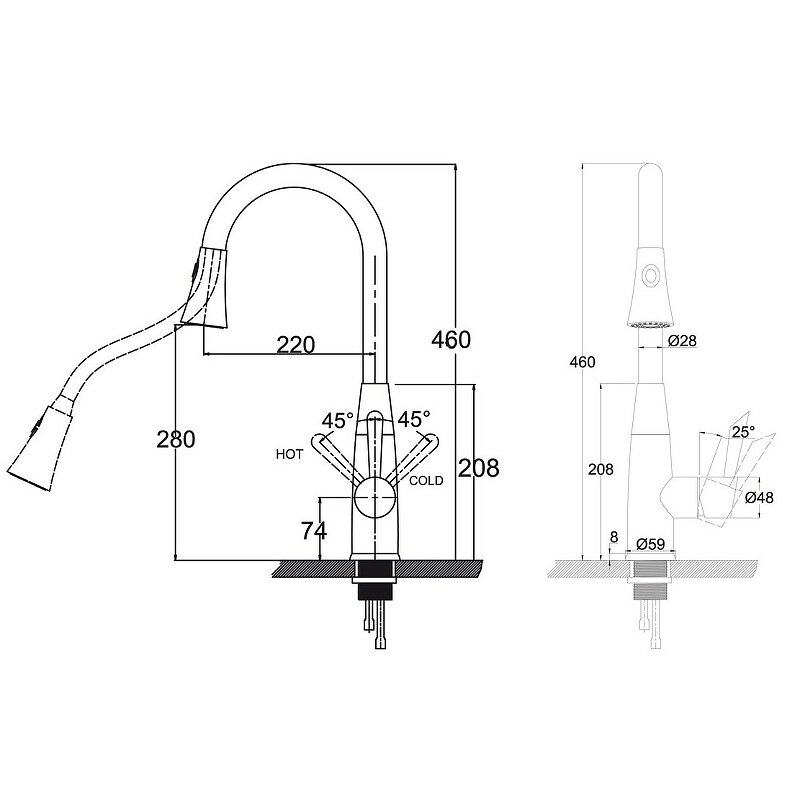 Kaiser Merkur 26144 Смеситель для кухни c выдвижным изливом, хром 10 332 ₽