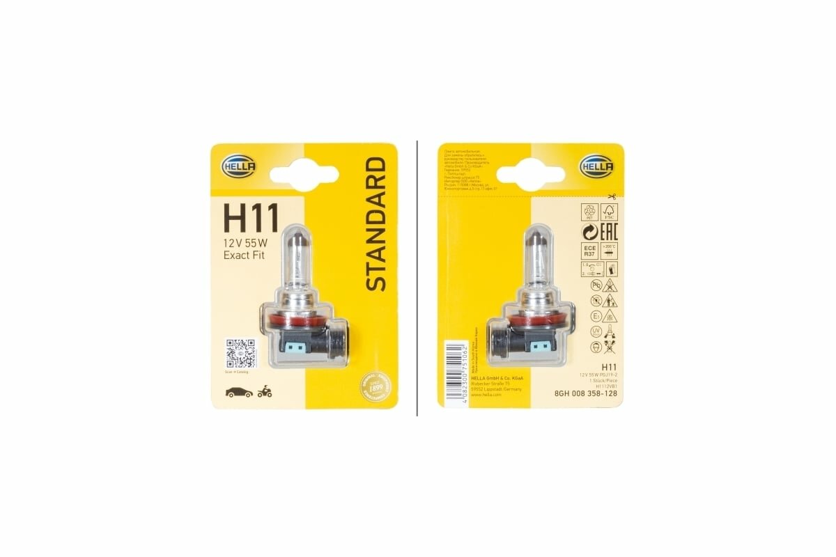 BEHR-HELLA 8GH008358-128 Лампа накаливания H11 12V 55W PGJ19-2 Standard Блистер (x1)