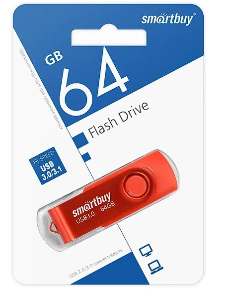 Отзывы на 3.0 USB флеш накопитель Smartbuy 64GB Twist (SB064GB3TWB) краcный