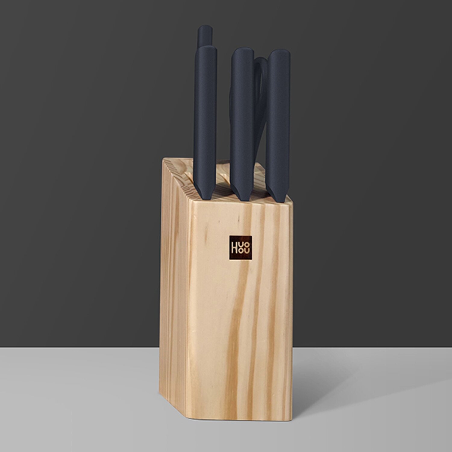 Набор HUOHUO Fire kitchen, 4 ножа и ножницы с подставкой