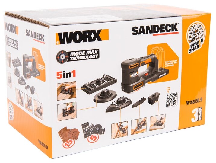 Виброшлифмашина WORX WX820 20V аккумуляторная с 2Ач батареей, 2А зарядкой и кейсом информация: