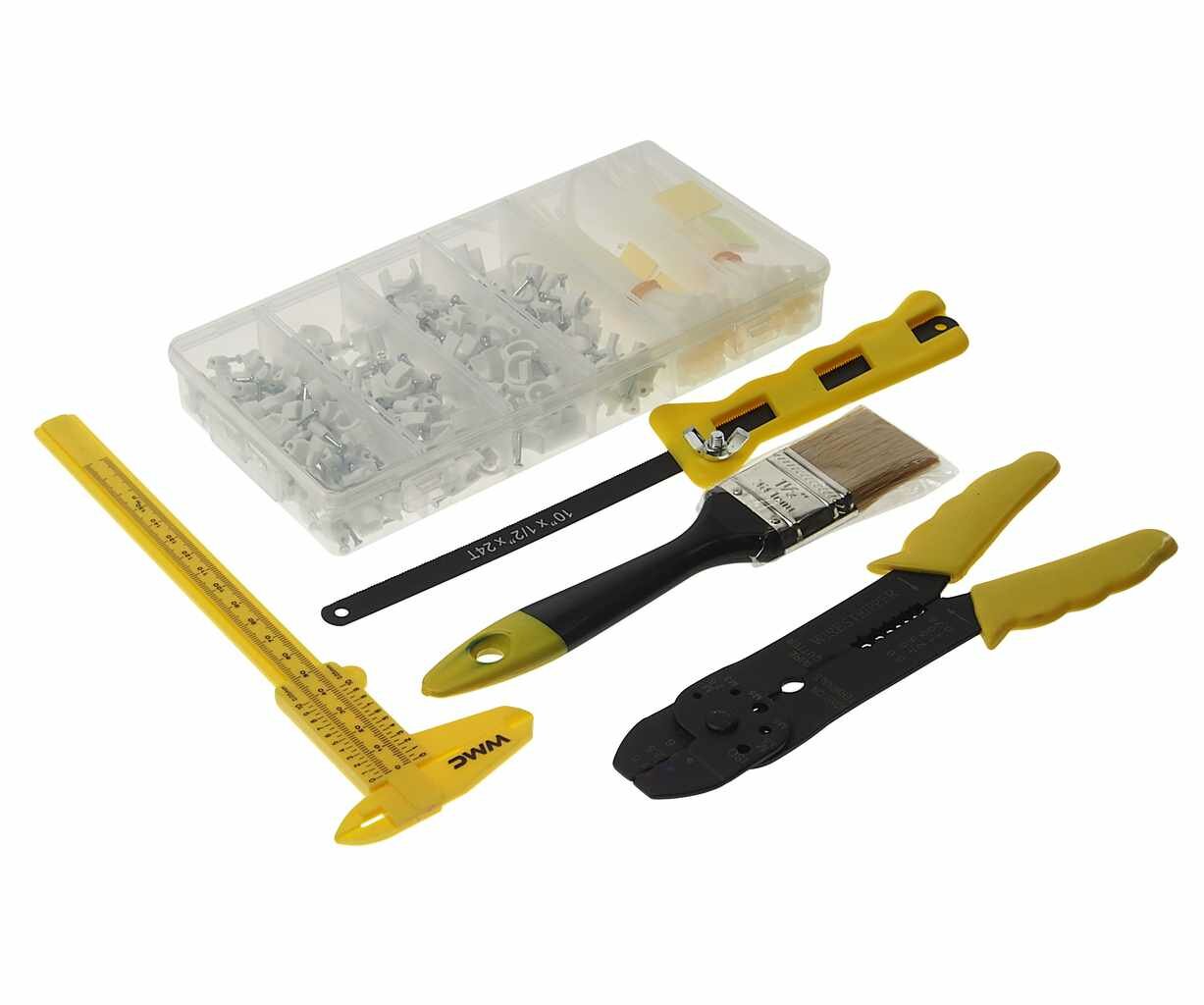 Набор инструментов 319пр.(кисточка, штангенциркуль, съемник изоляции, ножовка, держатели кабеля, клеммы, хомуты) WMC TOOLS WMC-10319