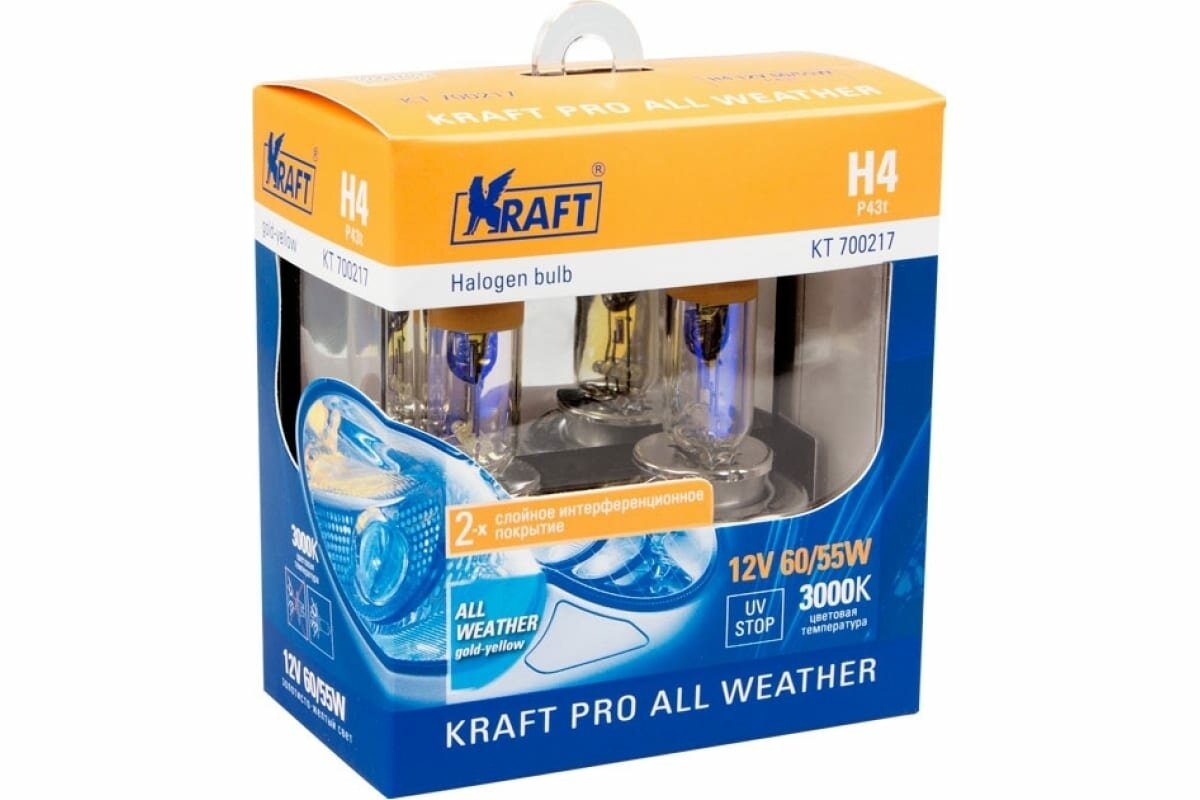 KRAFT KT700217 Лампа 12 В H4 60/55 Вт P43t Pro All Weather 2 шт. блистер Kraft