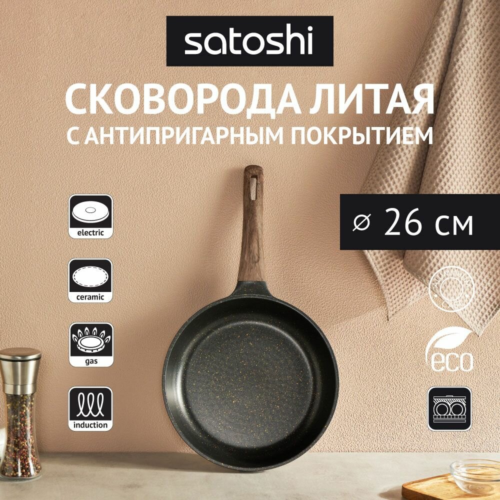 10 цен на SATOSHI Карнуа Сковорода литая d26см, антипригарное покрытие Мрамор, индукция 846-561