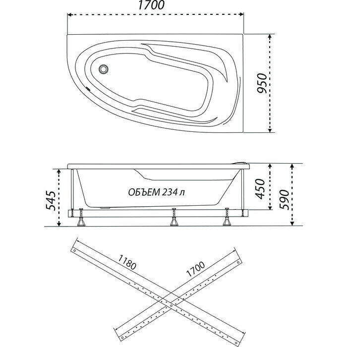 Акриловая ванна 1ACReal Мадрид -левая 170x95 с каркасом, белая информация: