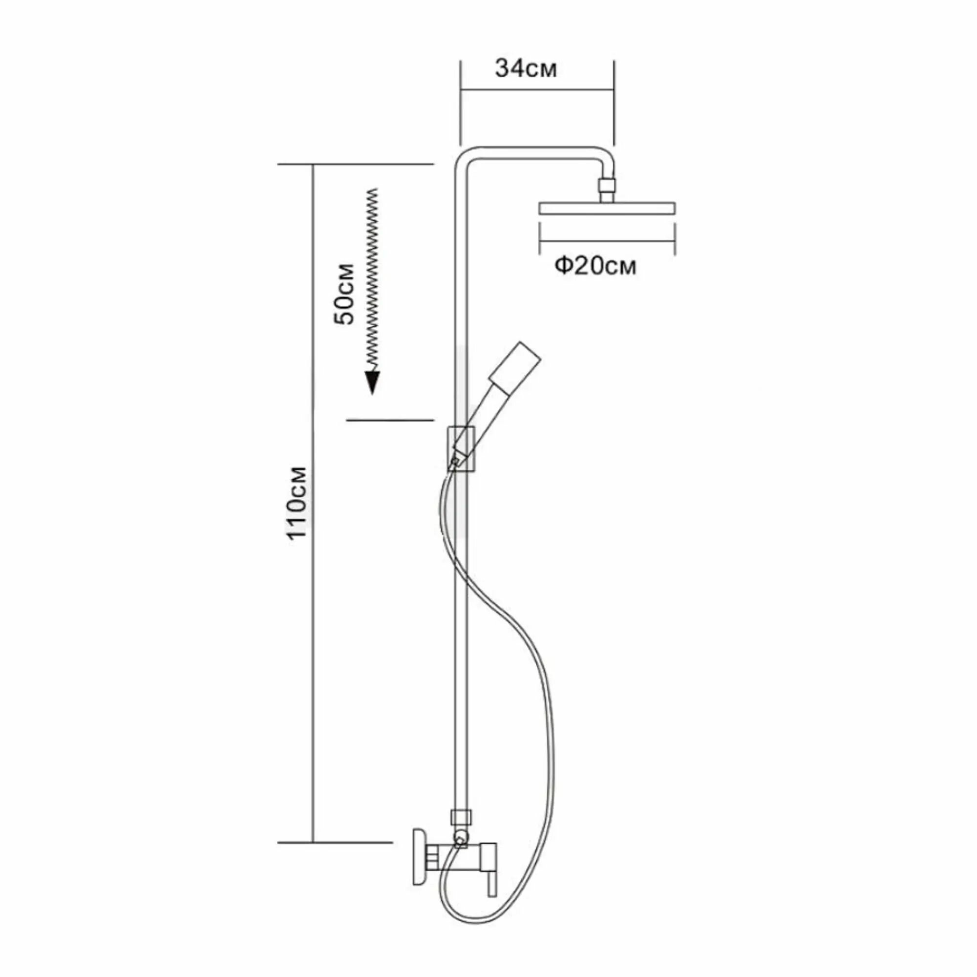| Дополнительная информация | высота стойки для душа: 1100 мм; диаметр верхнего душа: 200 мм |