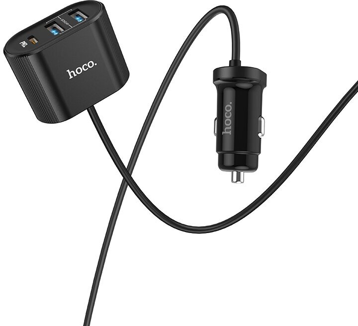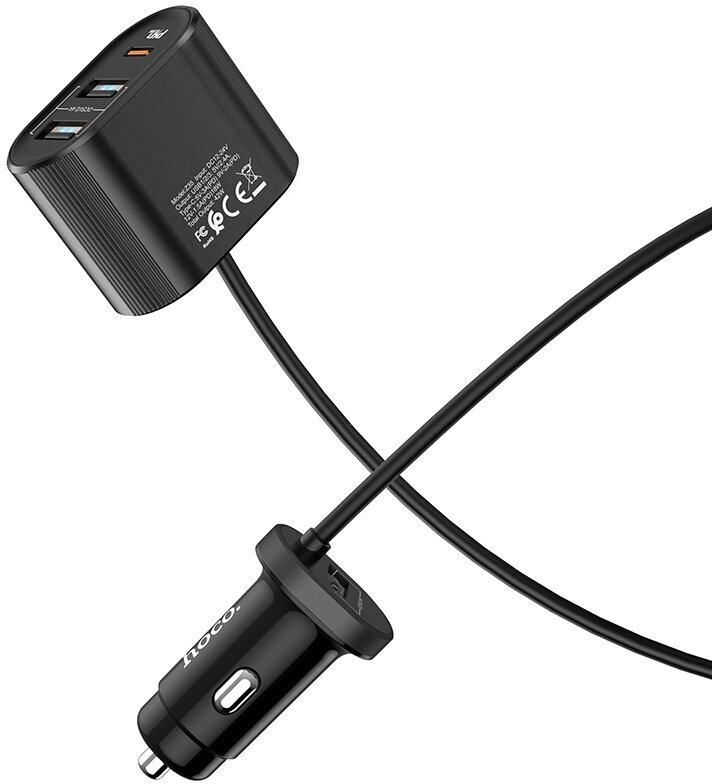 Разветвитель прикуривателя на 2 USB+1 PD с проводом+1 USB, Z35, Hoco, черный