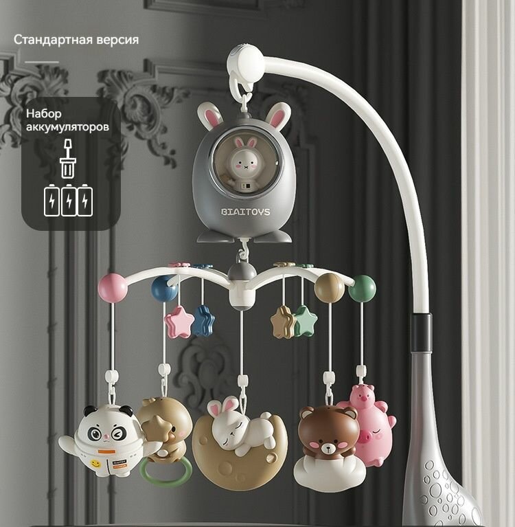 Мобиль на кроватку музыкальный для новорожденных и кронштейн из дерева-3