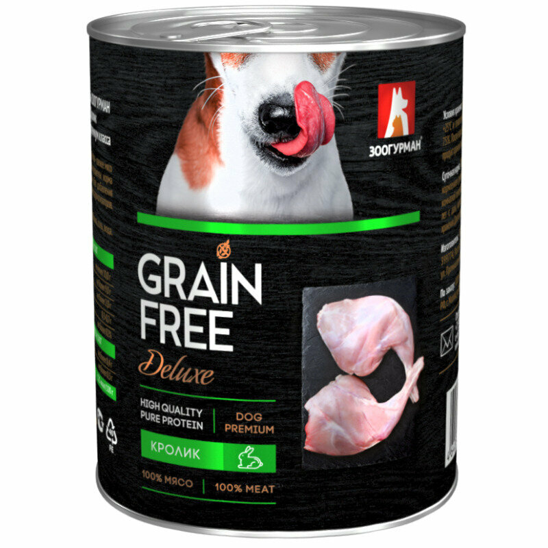 Консервы для собак зоогурман GRAIN FREE Deluxe кролик 350 г, (3 шт) БЕЗзерновой влажный корм информация: