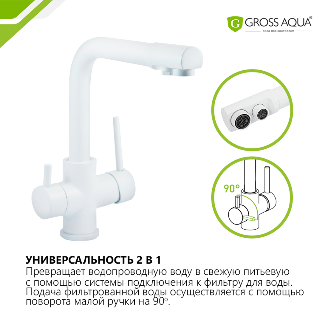 Смеситель для кухни с подключением к фильтру воды GROSS AQUA Ecolife, латунь, хром, 3120609MW. информация: