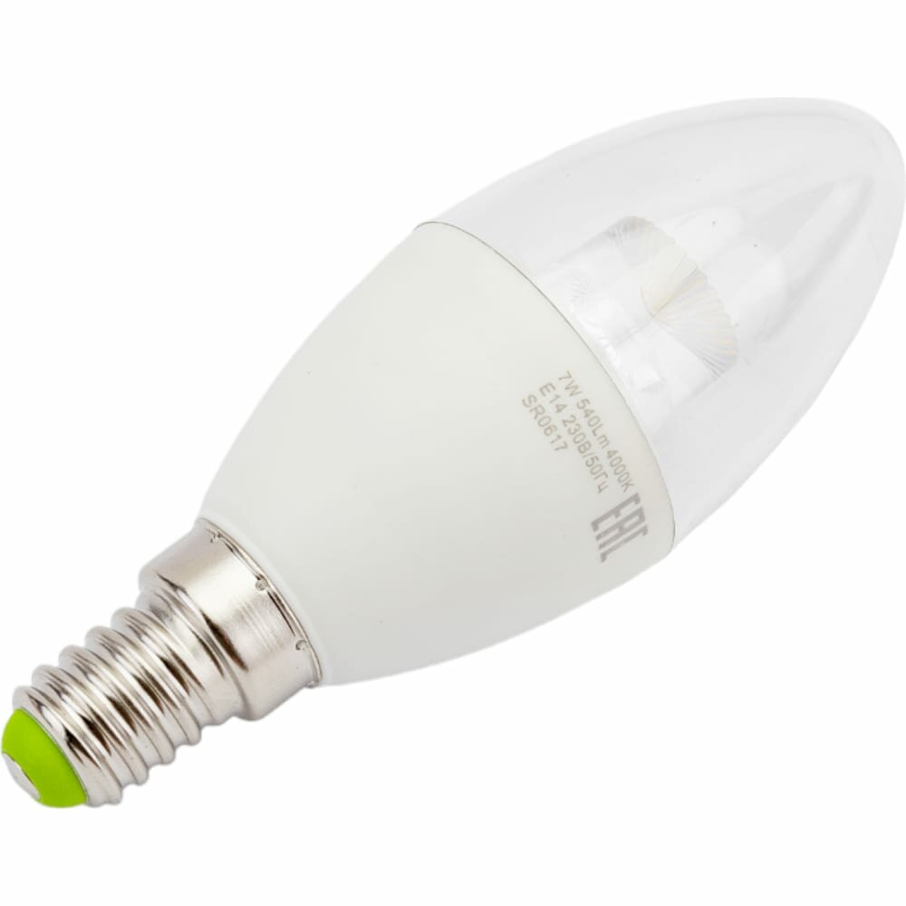 Светодиодная лампочка "Pulsar Свеча E27 7W(660lm) 4000K 4K 109x37 пластик/алюминий противоудар. ALM-C-7E27-4000-1, 1 шт.